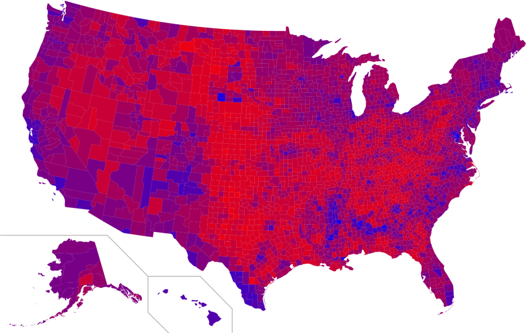 I am taking the time today to address the question of why ICE is going to only certain cities. Take a look at the map above, it shows you where ICE and Border Patrol can “Lawfully” work. And now compare it to the map of Party affiliation (by county) below:
